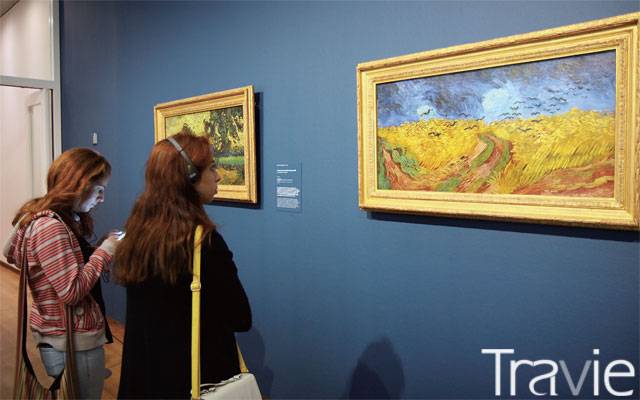 암스테르담 반 고흐 미술관. 까마귀가 있는 밀밭을 감상하는 관람객