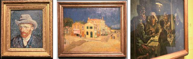 순서대로 펠트 모자를 쓴 자화상, 노란집, 감자 먹는 사람들