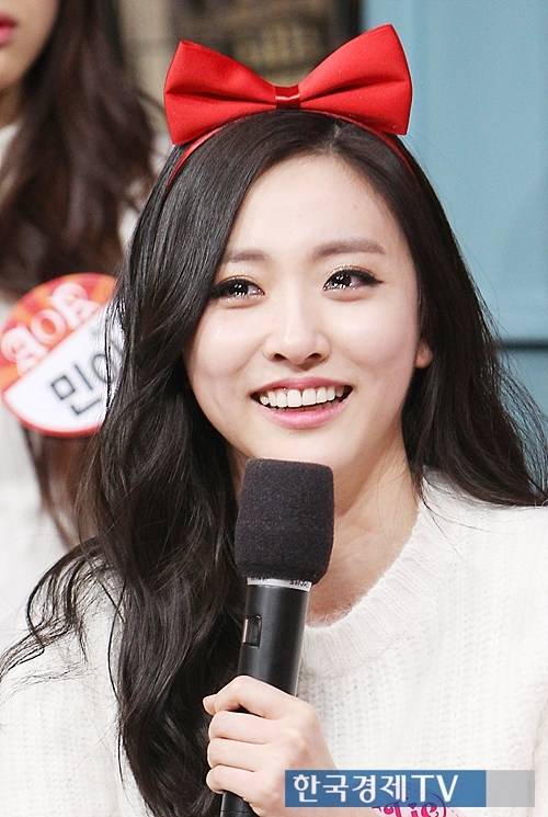 그룹 베스티(BESTie)의 해령이 서울시 상암동 DMCC빌딩에서 진행된 QTV '미소년 통신' 녹화 현장에서 진행을 하고 있다.