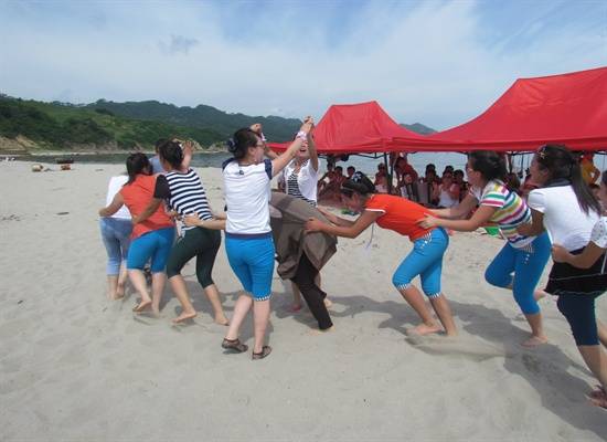 | ▲ 해칠보 해변에서 북한동포들과 함께 춤을... |