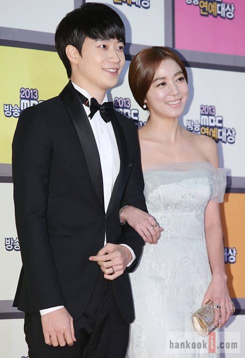 윤한과 이소연이 29일 오후 서울 여의도 MBC 방송센터 스튜디오에서 열린 ′2013 MBC 방송연예대상′에 참석해 포토타임을 갖고 있다.