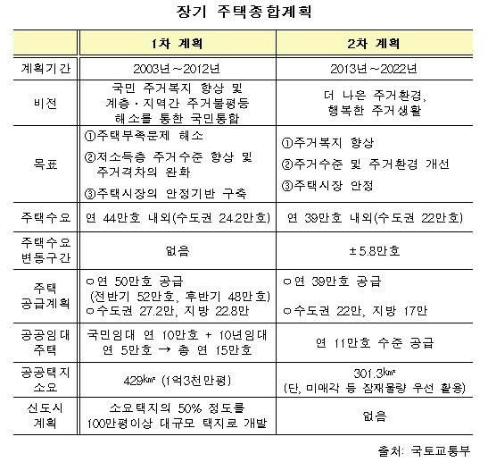 국토부 관계자는 "주택시장의 변화된 여건을 고려해 공급을 줄이고 주거복지를 확대하는 내용의 10년간 계획을 세웠다"면서 "앞으로는 급변하는 주택시장 환경에 대한 장기계획의 적합성을 높이기 위해 5년마다 장기계획을 수정할 계획"이라고 말했다.