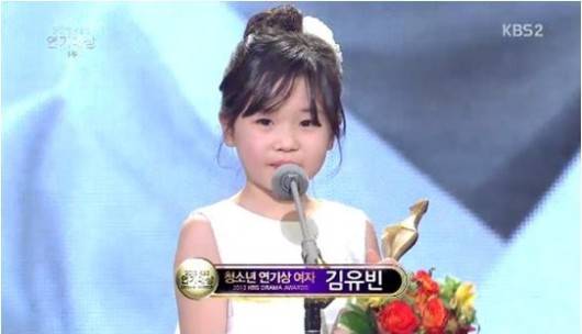 31일 오후 서울 영등포구 여의도동 KBS홀에서 열린 '2013 KBS 연기대상'에서는 김유빈이 여자 청소년 연기상을 수상했다.