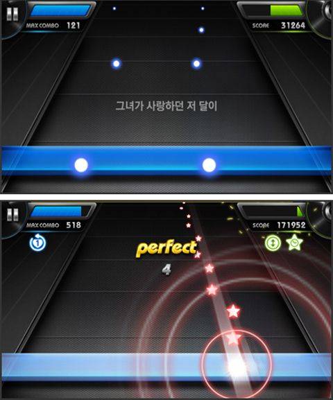 게임 플레이 방법은 간단하다. 위에서 아래로 떨어지는 노트에 맞춰 화면을 터치 하면된다. 일반 노트와 롱노트, 슬라이딩 노트로 구분돼 있는 각 노트를 터치하면 그 때마다 멜로디가 나와 이용자는 실제 악기를 연주하는 것과 같은 느낌을 받는다.