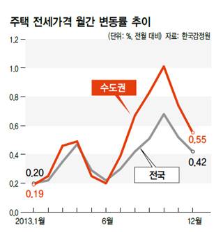 부동산업계에서는 연초 봄 이사철을 앞두고 '전셋값 강세, 매맷값 약세' 현상이 재연되면서 전세난이 심각해질 것을 우려하고 있다. 새해 들어 생애최초 주택 구입자에 대한 취득세 면제, 신규 분양(미분양) 주택 및 1가구 1주택자의 처분 주택 구입자에 대한 5년간 양도소득세 면제 혜택 등이 없어지면서 무주택 서민들이 집을 사는 수요는 주춤해진 분위기다. 반면 전세시장에서는 '반전세' 등 월세로 돌리는 매물이 늘어나고 순수 전세는 귀해지면서 전셋집 구하기가 '하늘의 별따기'처럼 어려워지는 추세다.