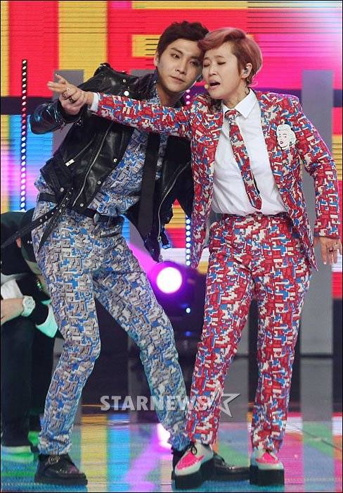 투송플레이스로 활동을 시작한 개그우먼 송은이, FT 아일랜드 송승현이 9일 오후 서울 마포구 상암동 CJ E & M 센터에서 열린 엠넷 엠카운트다운에서 멋진 무대를 펼치고 있다.