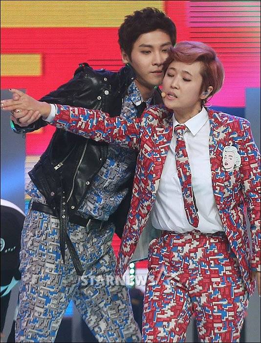 투송플레이스로 활동을 시작한 개그우먼 송은이, FT 아일랜드 송승현이 9일 오후 서울 마포구 상암동 CJ E & M 센터에서 열린 엠넷 엠카운트다운에서 멋진 무대를 펼치고 있다.