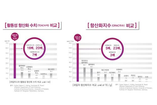 웰파인 아로니아 관계자는 "여러 가지 성분 중에서도 안토시아닌이 포도의 78배, 야생 블루베리의 33배 정도를 함유하고 있다. 일반 과일류와 비교할 때 뛰어난 항산화력을 가진 것으로 평가되며, 심혈관 염증을 현저하게 저하시킨다고 보고 되고 있다"고 밝혔다.