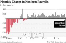 10일(현지시간) 미국 노동부가 발표한 지난해 12월중 비농업 취업자수가 전월대비 7만4000명 증가하는데 그쳤다. 이는 19만6000명이던 시장 전망치에 턱없이 모자라는 수준으로, 앞선 11월의 24만1000명에 비해서도 3분의 1 수준으로 급감한 것이다. 특히 이는 지난 2011년 1월 이후 2년 11개월만에 가장 저조한 숫자였다.