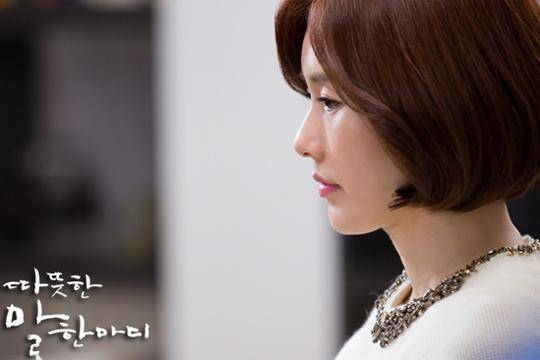 이제 김지수는 내면에 상처를 지닌 인물을 연기하는 대표 여배우가 된 듯하다. 최근 그녀가 연기하는 < 따뜻한 말 한 마디 > 의 송미경(김지수) 역시 남편의 불륜 더 나아가 자신이 사랑받지 못하고 있다는 사실 때문에 고통 받는 인물이다. 거기에 평범한 가정에서 자라지 못했다는 과거 때문에 어떻게든 가정을 유지하기 위해 애쓰는 모습 또한 더해진다. 아마 다른 드라마에서 이런 타입의 캐릭터는 그악스럽거나 아니면 지극히 신파적으로 흘러가기 십상일 거다.