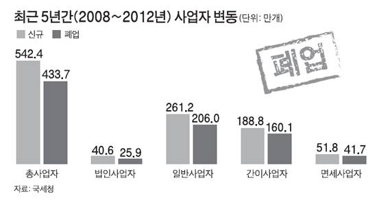 신생기업의 절반 이상이 문을 연지 2년도 채 안돼 폐업하는 것으로 나타났다. 글로벌 금융위기 이후 새로 만들어지는 기업이 늘고 있기는 하지만, 2곳 중 1곳 이상은 초기 문턱을 넘어서지 못하는 것이다.