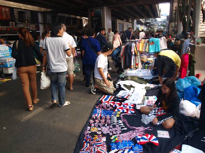 시위 현장에는 외국인 관광객들도 눈에 많이 띄었다. 이곳의 시위 문화마저 관광 상품마저 된 듯했다. 외국인 관광객들은 시위 물품과 음식을 잔뜩 쌓아놓고 파는 장터를 신기한 눈으로 쳐다봤다. 한 달 예정으로 태국에 여행 왔다는 영국인 션 스톡스(26)씨는 "오기 전에 시위 때문에 걱정을 많이 했는데 생각보다 위험하지는 않은 것 같다"며 "이곳만 봐서는 시위 현장이라고 생각하기 어려울 정도"라고 했다.