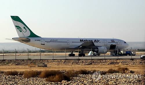 epa04038337 A photo made available 23 January 2014 shows an Iranian 'Mahan Air' plane at the Khalij-Fars airport in the southern port of Assalouyeh, southern Iran, 22 January 2014. After the implementation of the 24 November 2014 nuclear agreement with the world powers, economic sanctions against Iran were partially lifted, including the delivery of spare parts for the country's obsolete civil air fleet. Under the deal reached in Geneva, Switzerland, in November 2013 with six world powers, the United States and European Union many sanctions has been suspended, apart from embargoes on Iranian crude oil exports and financial transactions which are still in place. EPA/ABEDIN TAHERKENAREH