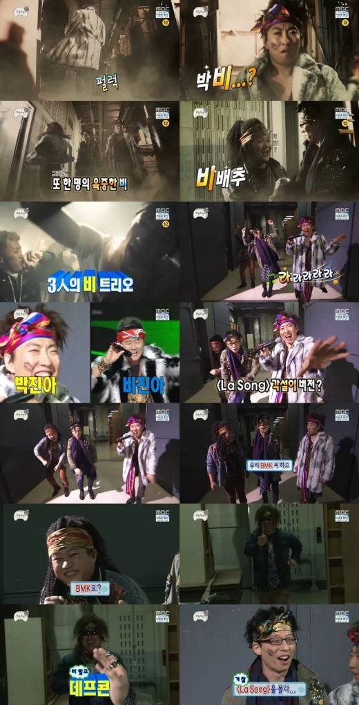 [TV리포트=김예나 기자] '무한도전' 유재석 박명수 양배추가 비의 '라 송(LA Song)'을 패러디했다.