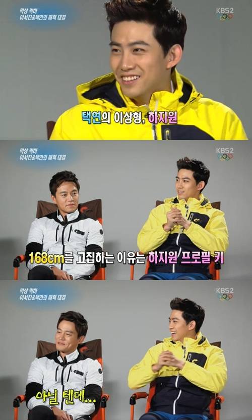 옥택연은 "난 항상 이상형 키는 168cm이다. 그게 장신이냐"며 "'다모' 보면서 하지원씨가 예전부터 이상형이었다. 하지원씨 키가 168cm이더라. 그래서 그렇다"고 말했다. 이에 '다모'에서 하지원과 함께 했던 이서진은 "아닐텐데..."라고 의문을 제기해 웃음을 자아냈다.