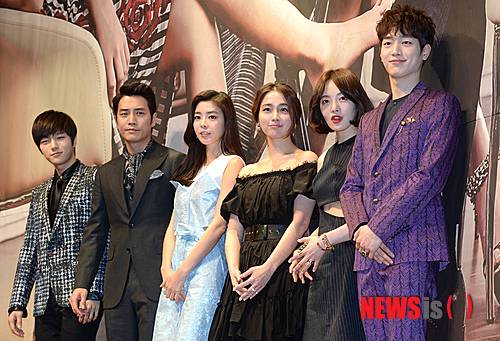 【서울=뉴시스】박상훈 기자 = 24일 오후 서울 역삼동 더 라움에서 열린 MBC 새 수목 드라마 '앙큼한 돌싱녀' 제작발표회에서 엘, 주상욱, 김규리, 이민정, 황보라, 서강준이 포즈를 취하고 있다.