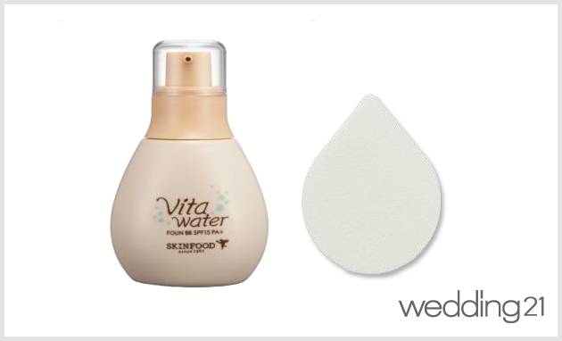 자연스러운 내추럴 메이크업에는 역시 비비크림이 제격. 스킨푸드 비타 워터 파운비비로 보송보송한 생얼 피부를 표현해보자. 물방울 퍼프에 묻혀 좁은 곳까지 피부결을 살려주면 된다. (SPF 15 PA+, 45g / 14,000원)