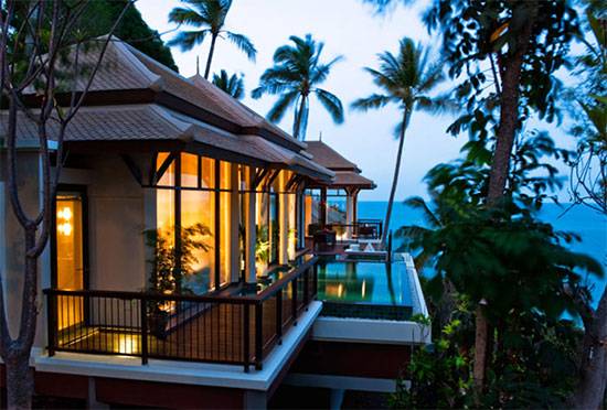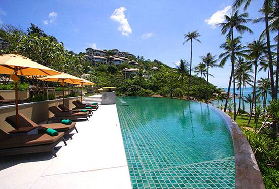 코사무이 라마이베이 해변 언덕에 위치하고 있는 반얀트리는 다른 리조트보다 높은 곳에 있어 전경이 뛰어나고 프라이빗이 보장되는 독채빌라여서 허니무너들에게 로망지이다.