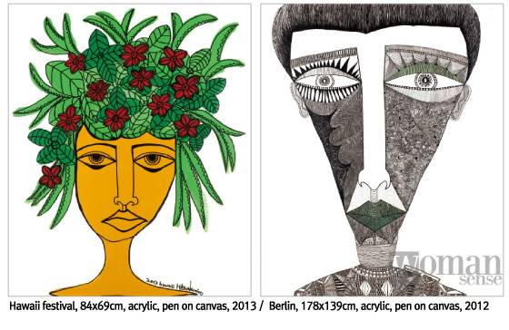 이번 전시에 공개된 작품들은 독특한 패턴과 다양한 색감이 인상적이다. 같은 갤러리에서 2년 전 열린 개인전 때보다 훨씬 화려해졌다. 작년 한 해 동안 두 편의 영화를 개봉하는 살인적인 스케줄에도 불구하고 그는 수십여 점의 작품을 완성했다.