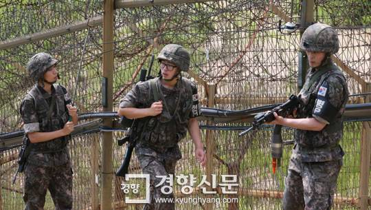 강원도 철원군 6사단 DMZ 철책에서 육군 장병들이 경계순찰근무를 하고 있다. | 경향신문 자료사진 |