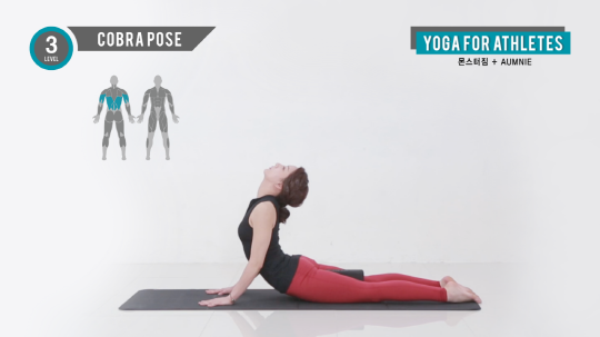 코브라 자세는 광배근의 수축을 통해 가슴을 열리게 한다.