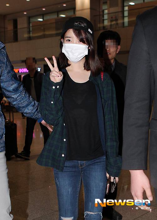 아이유가 홍콩 팬미팅을 마치고 3월 24일 오후 인천국제공항을 통해 공항패션을 선보이며 귀국했다.