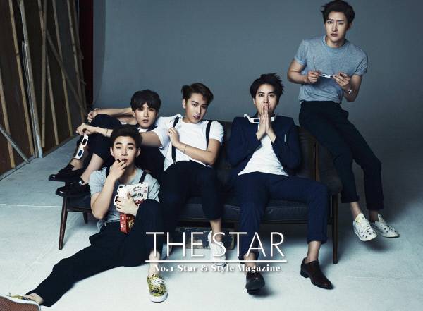 사진 속 멤버 헨리, 규현, 려욱, 조미, 성민은 깔끔한 정장을 입고 재미있는 표정을 지었다. 이들은 재킷과 셔츠를 입고 장난감을 갖고 노는 '키덜트(Kidult·아이같은 어른)' 패션을 선보였다.