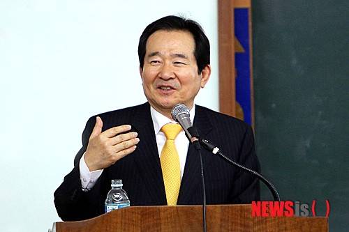 【서울=뉴시스】새정치민주연합 정세균 의원이 28일 오후 서울 종로구 상명대학교 밀레니엄관에서 '글로벌한 인재가 되기 위하여'라는 주제로 강연을 하고 있다. 2014.03.28. (사진=상명대학교 제공)