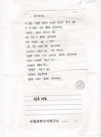 또박또박 써내려 간 '감사하세요'라는 제목의 메모는 두 사람 사이의 '사랑'을 증명하는 데 충분해 보였다. 하지만 메모를 본 어머니는 "딸의 필체가 아니다"라고 확신했다. 당시 국립과학수사연구소가 메모와 황씨의 노트 필적을 비교한 결과 '상이'한 것으로 나타났다. 어머니가 사설 필적조사기관에 의뢰한 결과 메모는 살인범 이씨가 쓴 것으로 드러났다. 조작된 증거였다.
