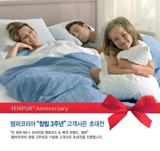 매트리스, 베개 브랜드 템퍼(www.tempur.com)가 템퍼코리아 창립 3주년을 기념해 '고객 사은 초대전'을 진행한다고 4일 밝혔다.