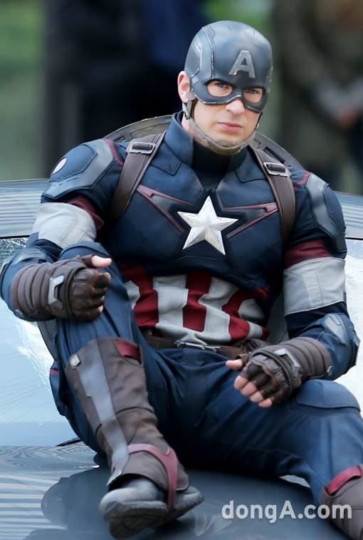 할리우드 배우 크리스 에반스가 4일 오후 서울 마포구 월드컵북로에서 영화 '어벤져스: 에이지 오브 울트론'(이하 어벤져스2) 촬영을 준비하고 있다.