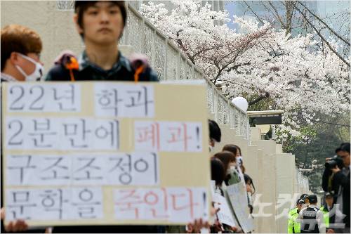 지난달 21일 서일대가 정부의 대학 구조개혁 방침에 따라 문예창작과, 연극과, 사회체육 골프과 등을 폐지한다는 소식이 알려지자 학생들은 거리로 쏟아져 나왔다.