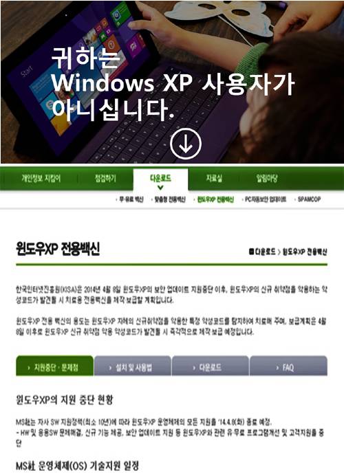 보호나라 무료백신 "윈도우 XP 서비스 지원 종료, XP 지원 종료 대처법 '엠아이 XP' 접속"