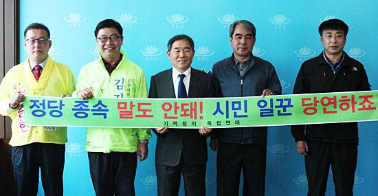 지역정치독립연대는 10일 춘천시청 기자실에서 기자회견을 하고 '풀뿌리 정치'를 희망하는 정치지망생들에게 이번 6.4지방선거에 적극적으로 출마할 것을 제안했다. 독립연대는 풀뿌리 정치를 희망하는 정치지망생들에게 선거 자금과 조직을 지원한다는 계획이다.