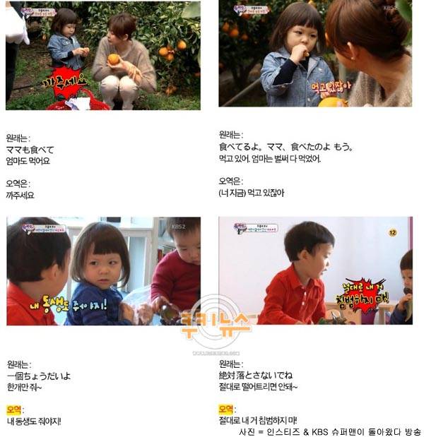 [쿠키 연예] KBS 인기 예능 프로그램 '슈퍼맨이 돌아왔다'에 자막 오역이 심하다는 지적이 나왔다.