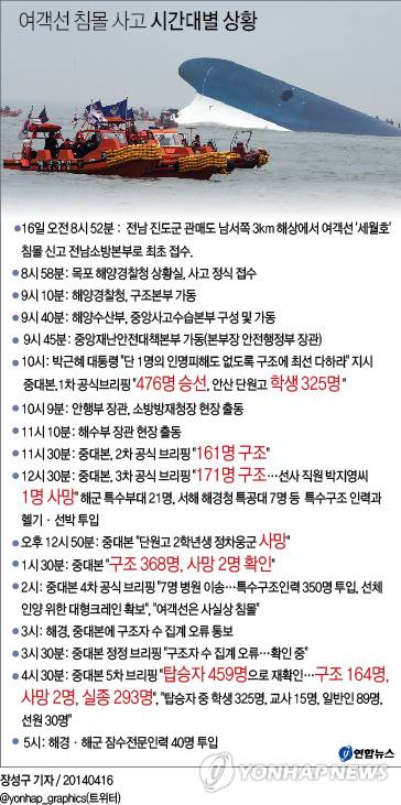 <그래픽> 여객선 침몰 사고 시간대별 상황