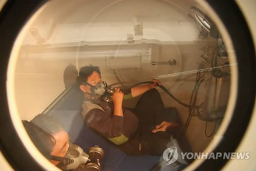 (서울=연합뉴스) 문화재청 산하 국립해양문화재연구소가 보유하는 수중 발굴전문선 누리안호의 잠수병 예방 감압챔버. 이 발굴선은 여객선 세월호가 침몰한 진도 근해 사고 현장 구조활동에 투입됐다. 2014.4.16 < < 문화부 기사 참조. 문화재청 제공 > >
