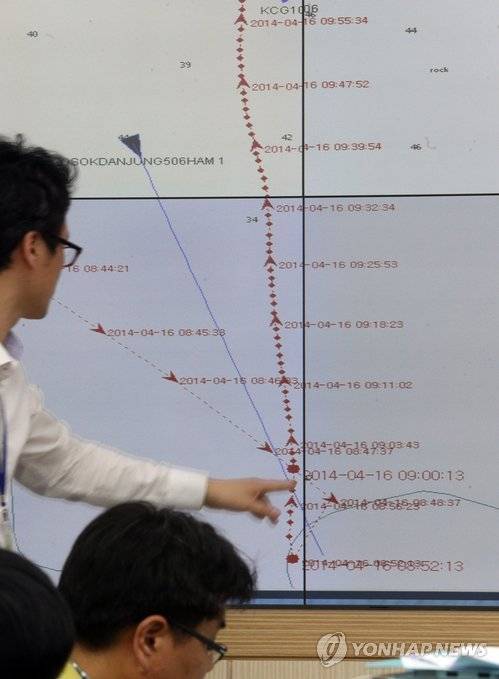 <여객선침몰> 세월호, 뾰족한 선형 그리며 급선회