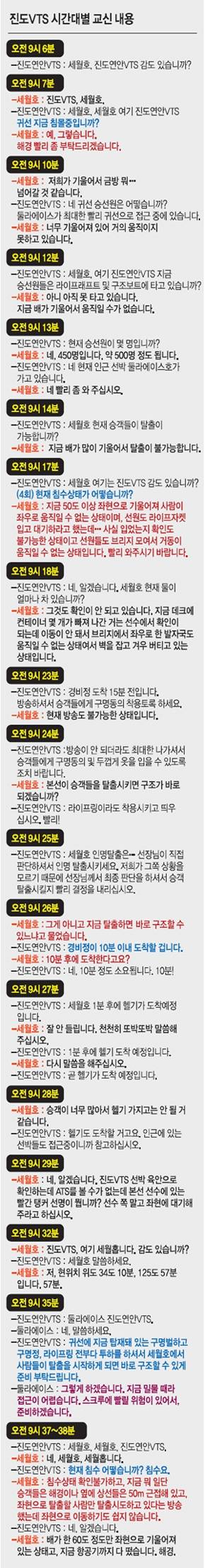 [세월호 침몰 참사-진도VTS와 교신 내용] "구조되겠나" 말만 되풀이.. 골든타임 놓쳤다
