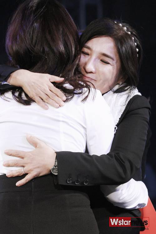 준오헤어 대표 강윤선이 수료생을 포옹해주고 있다.
