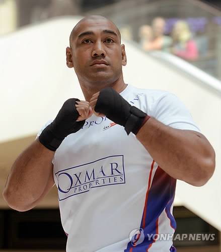epa04177147 Australian heavyweight boxer Alex Leapai takes part in a public training session in Centro in Oberhausen, Germany, 23 April 2014. Leapai will challenge WBO, IBF, WBA and IBO heavyweight champion Wladimir Klitschko on 26 April 2014 in Oberhausen. EPA/CAROLINE SEIDEL