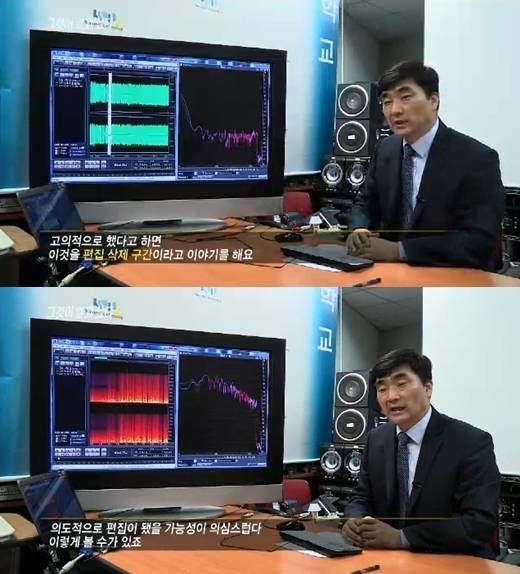 숭실대학교 소리공학연구소 소장 배명진 교수도 해당 녹음 파일을 분석한 후 특정 부분을 지적하며 "의도적인 삭제 혹은 덧씌움이 존재하는 것 같다"고 밝혔다. 배 교수는 "고의적으로 했다면 이것을 편집 삭제 구간이라고 한다"며 "의도적으로 편집이 됐을 가능성이 의심스럽다"고 강조했다.