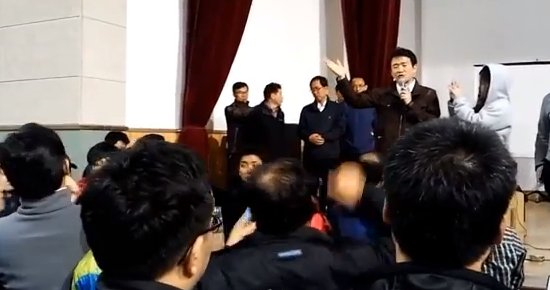 남경필 새누리당 의원이 지난 17일 실종자가족들을 방문했다가 항의를 받던 모습. 사진=민중의소리 동영상 캡처 |