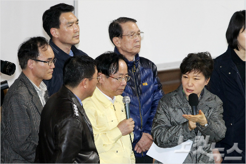 지난 17일 박근혜 대통령이 진도체육관 실종자가족을 방문했을 때 모습.©CBS노컷뉴스 |