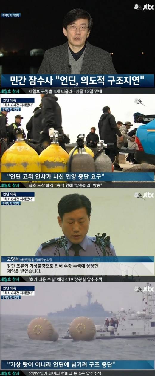 [TV리포트=황소영 기자] JTBC '뉴스9'에서 언딘에 시신 수습을 미루기 위해 구조 시간이 6시간 지체 됐다는 의혹이 제기됐다.