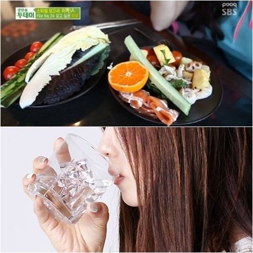 또한 물을 많이 마시는 습관을 가지는 것이 좋다. 물을 마시는 습관은 지방을 제거하는데 도움을 주며 촉촉하고 광채 나는 피부를 갖게 해준다. 기상 후, 오전과 오후, 점심과 저녁 식사 30분 전에 수시로 물을 섭취해야 다이어트에 도움이 된다.