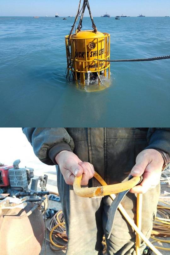 [티브이데일리 이현영 기자] 해난구조장비 다이빙벨이 세월호가 침몰된 해상에 첫 투입됐으나 케이블에 문제가 생겨 끌어올려진 가운데 알파 측이 해경 측에게 문제를 제기해 논란이 예상되고 있다.