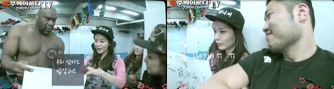 '야수파이터'밥샵과 엉뚱한 매력의 소유자 맹승지의 재치 넘치는 모습이 포착됐다. 'XTM주먹이운다-도쿄익스프레스'예고 영상이 공개되면서 두 사람의 모습이 깨알 웃음을 자아낸 것.