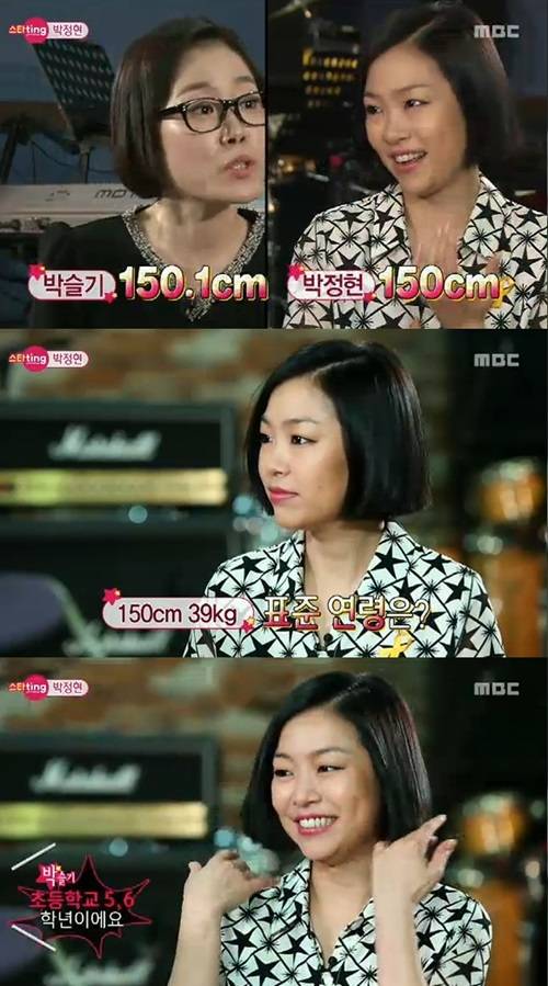 박정현의 키는 150cm였다. 박슬기는 "나랑 키는 비슷한데 몸무게는 다르다"며 "그래도 내 키가 0.1cm 크다"고 자랑해 박정현을 폭소케 했다.