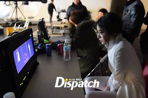 사실, 힐 신고 춤추기…. 쉽지 않습니다. 게다가 물 위에서 춤을 췄습니다. 지연, 발 보호에 나섰습니다. 핫팩으로 녹이고, 운동화로 달랬습니다. 오후 촬영에는 검은 힐을 신을 예정입니다.